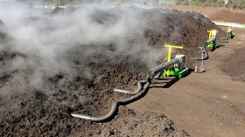 Uniform distribution of air is achieved through the exacting specifications of the MAF components and by controlling the periodic injection of forced air in the static pile windrow.