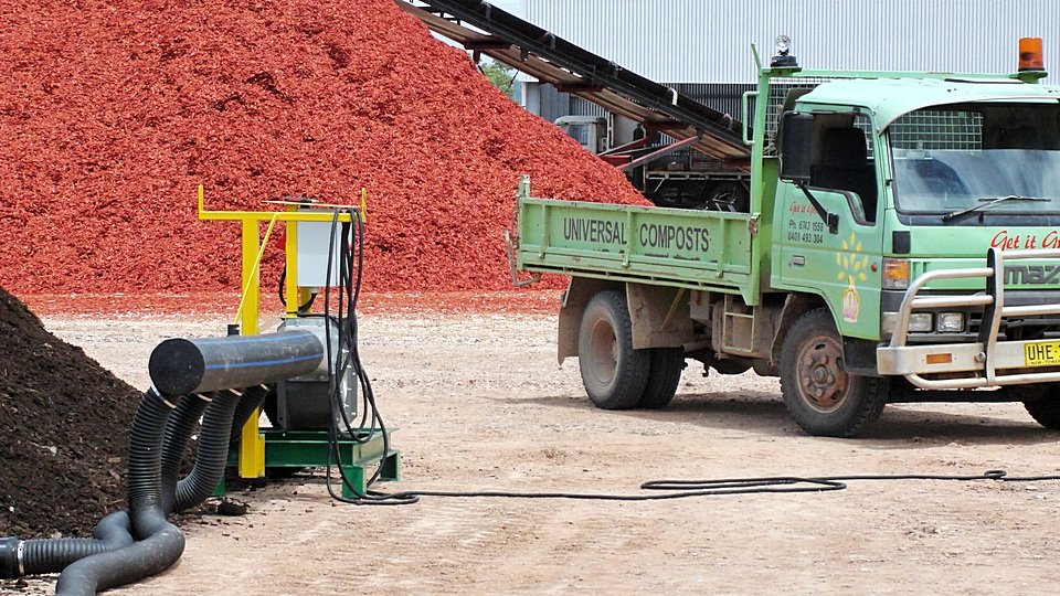 Universal Composts is located in one of the biggest agricultural areas of Australia. In an effort to move away from the detrimental effects of chemical fertilizer the managing director, Patrick Hennessy, had long ago conceived of the idea to produce compost for farm land applications. When he spoke to MAF about the production of “humified compost” he mentioned the significant energy requirements and costs associated to wear and tear on equipment. This was based on the standard industry recommendation for properly aerated humified compost which suggests utilization of a windrow turner to turn the compost each and everyday. In reality, all this does is mix the material since oxygen levels are quickly depleted by the anerobic processes within the material. The only solution is to maintain airflow within the compost. Thus, the MAF aeration model of “move the air through the compost instead of moving the compost through the air” became the logical solution for Universal Composts.